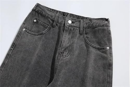 Mens Jeans Spring Loose Straight Baggy Elastic Waist Wide Leg Casual Denim Pants Comfortable 7