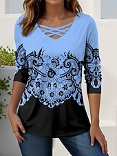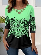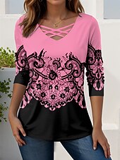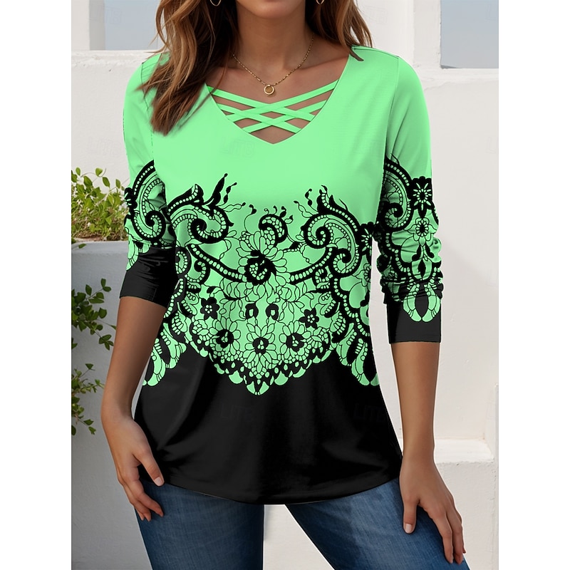 More information about Women's T Shirt Graphic Geometric Vintage Stylish Casual Long Sleeve V Neck Regular Tops Daily Cut Out Print White Pink Blue Green Spring Fall