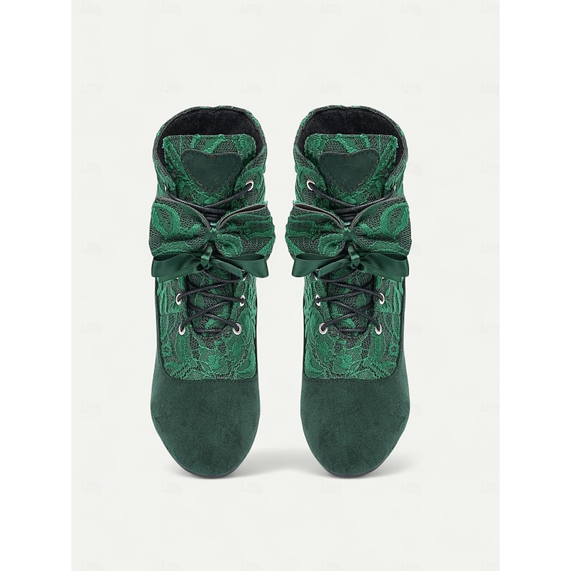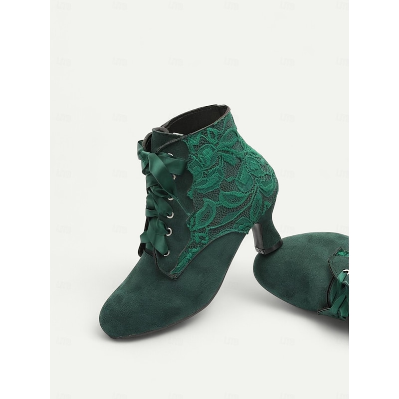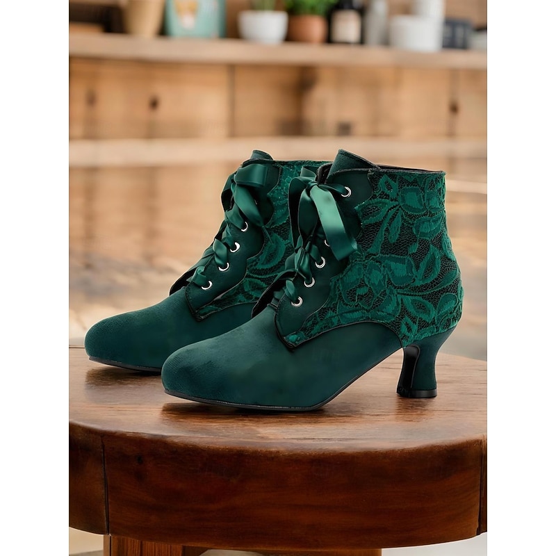 HOT ! Women's Victorian Lace-Up Ankle Boots - Green Suede High Heel Booties for Vintage and Steampunk Costumes