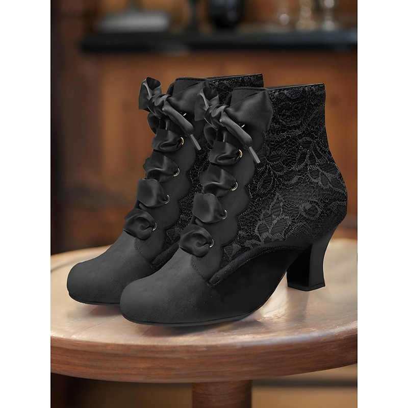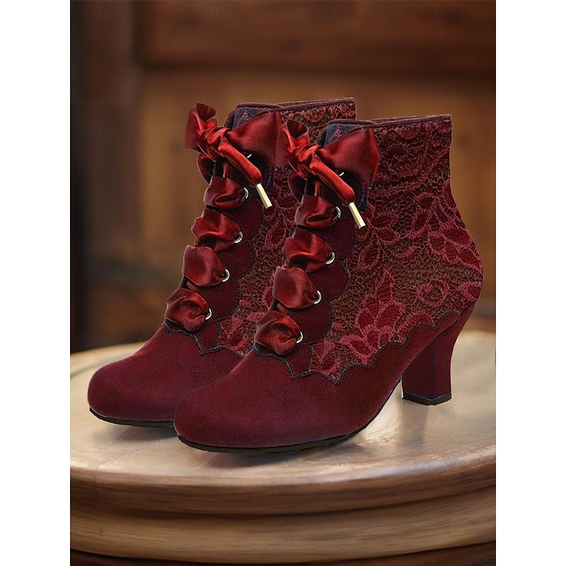 More information about Women's Victorian Lace-Up Ankle Boots - Green Suede High Heel Booties for Vintage and Steampunk Costumes
