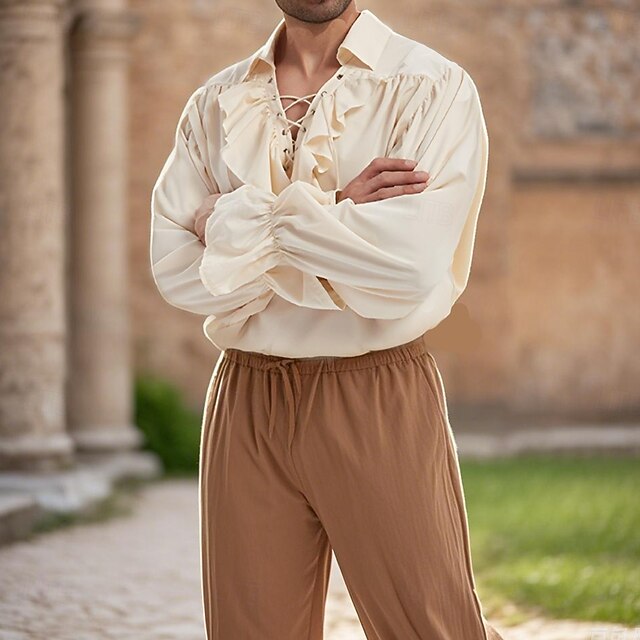 $30.99 - Punk & Gothic Medieval Renaissance Shirt Plus Size Pirate Knight Ritter Viking Ruffle Solid Colored Fancy Dress Men's Pirate Royal Halloween Carnival Performance Renaissance Fair LARP Adults' Shirt 2025. Shop for cheap Tops online? Buy at lightinthebox.com on sale today!