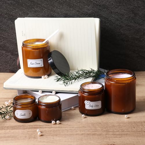 • EASY TO CARRY: The amber glass jars are convenient to carry. You can pack lotions and scrubs into 4 oz glass jars for easy portability.
