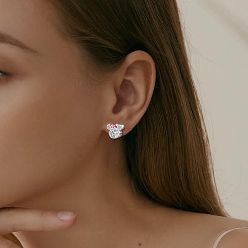 HOT ! Sterling Silver Mouse Stud Earrings Sparkling Cubic Zirconia Cute Bow Mouse Earrings Hypoallergenic Lightweight Jewelry Gifts for Teens Daughter Granddaughter