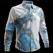 HOT ! Men's Marble Abstract Liquid Art Shirt Button Up Shirt Long Sleeve Fashion Casual Outdoor Dailywear Spring Fall Turndown 3D Print Linen Like Shirt Blue+Khaki Blue Light Blue
