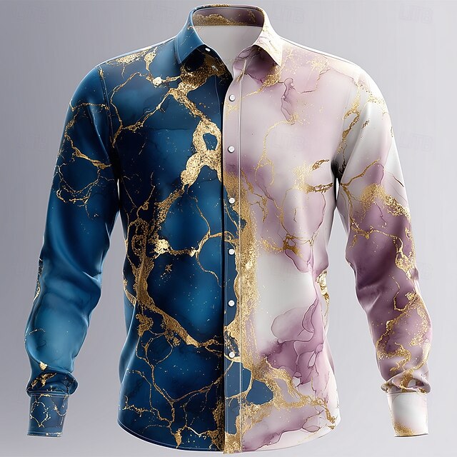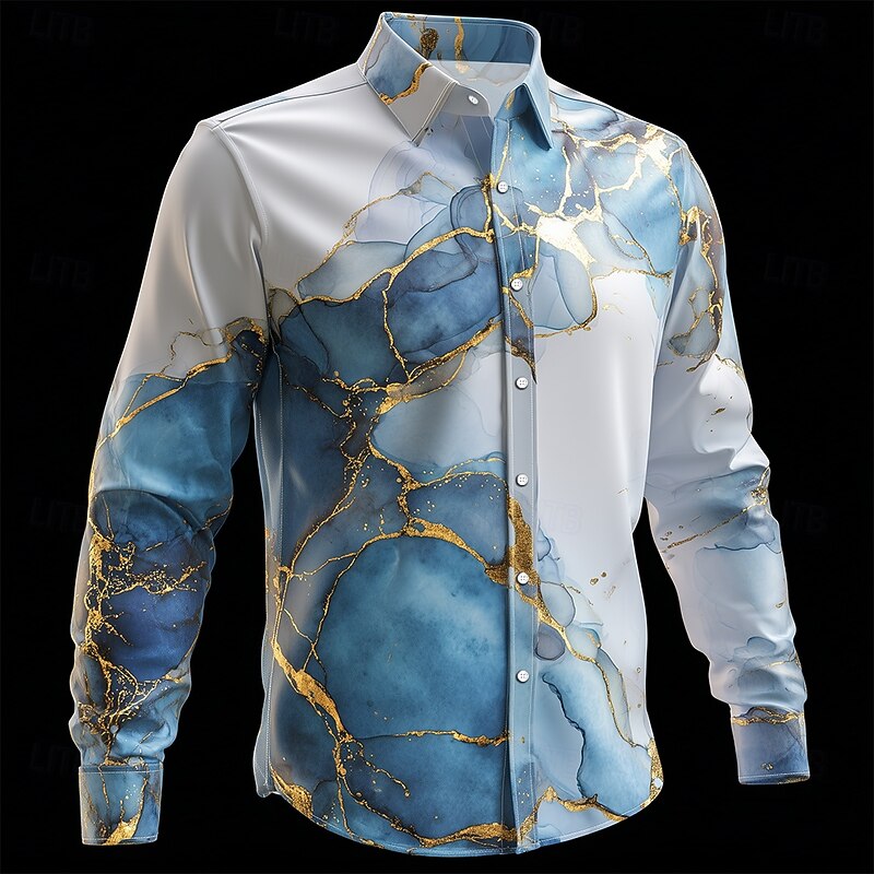 More information about Men's Marble Abstract Liquid Art Shirt Button Up Shirt Long Sleeve Fashion Casual Outdoor Dailywear Spring Fall Turndown 3D Print Linen Like Shirt Blue+Khaki Blue Light Blue