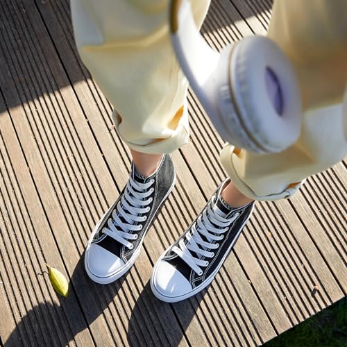 • Soft & Comfortable - A comfortable and soft wearing experience for you.Womens black and white canvas shoes are padded memory foam,you can walk comfortable with them.