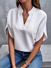 $25.99 - Basic Casual Solid Color Women's Blouse Short Sleeve Notched Neck White Pink Summer Top 2025. Shop for cheap Shirts online? Buy at lightinthebox.com on sale today!