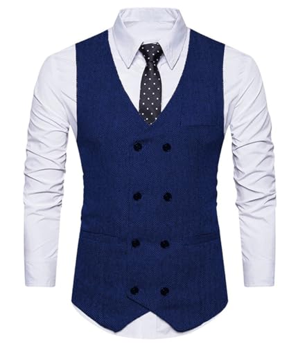 HOT ! Men's Double-Breasted Vest Suit Vest Casual Top Herringbone Pattern Waistcoat For Wedding