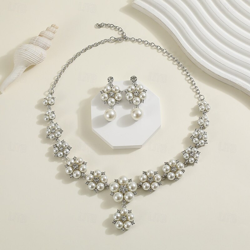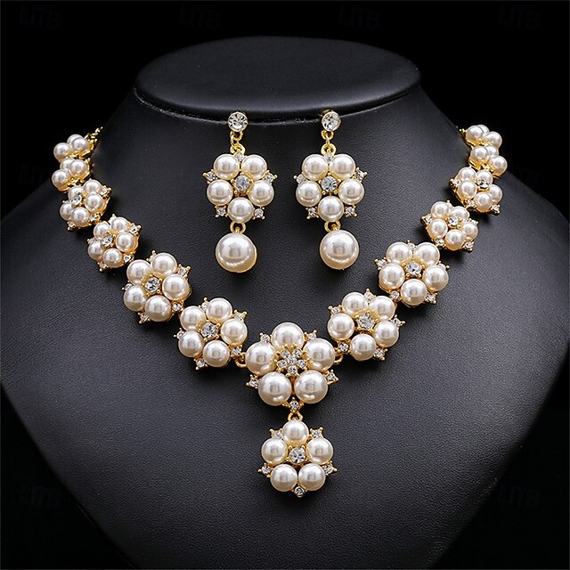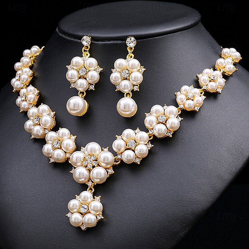 More information about Jewelry Set Two-piece Suit Green Pearl Chrome 1 Necklace Earrings Women's Elegant Vintage Fashion Vintage Style Classic Jewelry Set For Wedding Party Wedding Guest