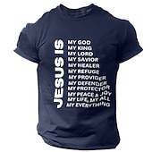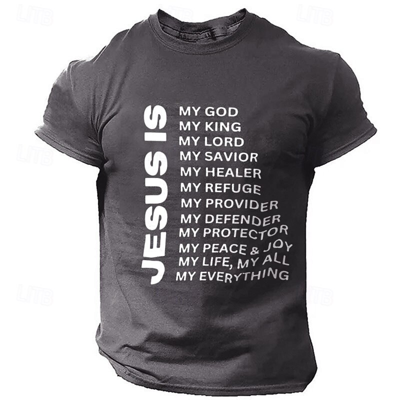 Highlights [Fabric & Fit] : Made from a 100% cotton fabric, this men's T-shirt ensures a soft and breathable experience. The micro-elastic property provides a comfortable and regular fit, suitable for all-day wear. [Design Highlights] : This classic T-shirt showcases a bold and impactful design with the phrase "Jesus Is" printed vertically in striking white lettering. The crew neck and short sleeve cut deliver a timeless and versatile look, making it an essential addition to any casual wardrobe. [Occasions] : Perfect for various settings, this T-shirt is a great choice for sports, outdoor activities, holidays, or everyday outings. Its classic and casual style effortlessly blends with jeans or casual trousers, making it ideal for daily wear or as a thoughtful gift. [Size Range] : Available in a wide range of sizes, from S to XXL, accommodating diverse body types with ease. [Garment Care] : Easy to care for, this T-shirt is machine washable and suitable for both wet and dry cleaning, ensuring long-lasting wear and convenience.