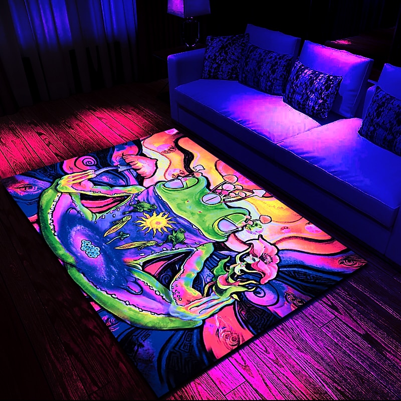 Tree of Life Blacklight Rug Carpet Floor Mat UV Reactive Glow in the Dark Rug Large Non-Slip Rug Mat Carpet for Room Decor 8
