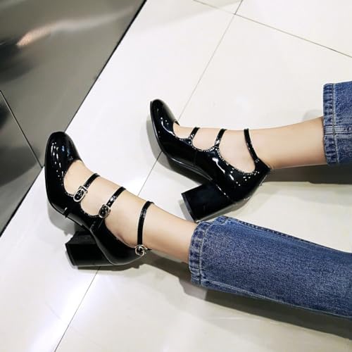 • ➤FIT MEASUREMENTS】: 2.75" Chunky Block High Heels Mary Jane Pump Shoes; High-Quality Patent Leather Upper Material; Cozy Breathable Microfiber Lining.