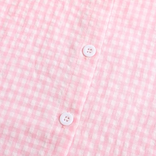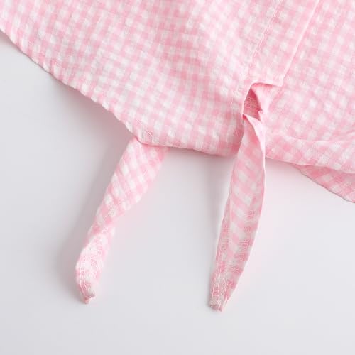 Girls Sleeveless Button Down Shirt Plaid Crop Tank Tops Summer Tie Knot Ruffle Sleeve Shirts Blouses 6