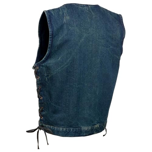 HOT ! Milwaukee Leather MDM3013 Men's 'Brute' Concealed Snap Blue Denim V-Neck Side Lace Club Style Vest w/Hidden Zipper