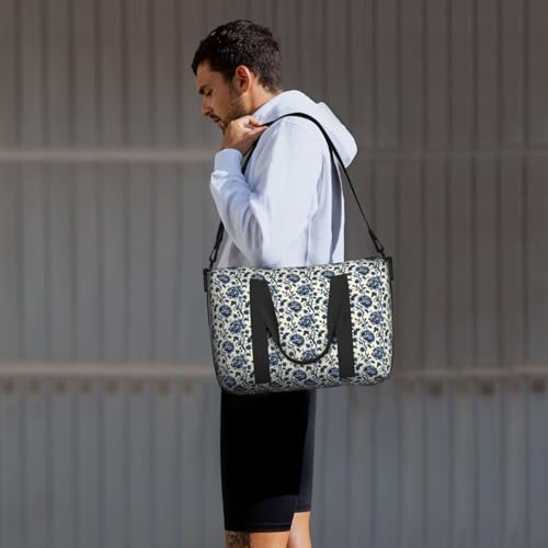 More information about Travel Duffle Bags For Women Men - Retro Blue Flowers Print Personal Item Weekender Overnight Gym Carry On Airport Tote Bag With Strap For Yoga, Travel, Business Trips