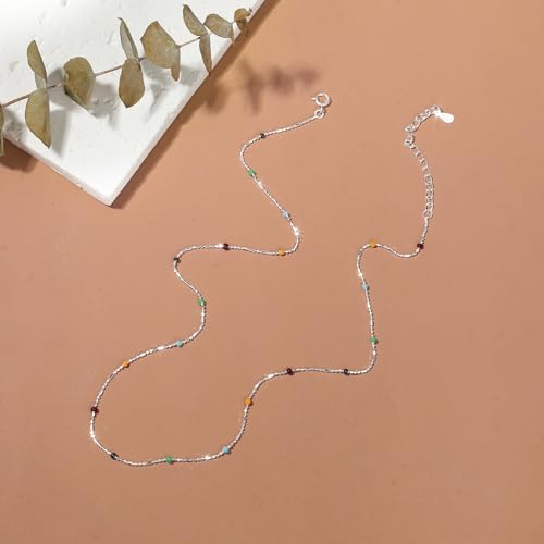 Color Beaded Choker Necklace for Women S925 Sterling Silver CZ Cute Rainbow Chain Necklace Bohemian Beaded Necklaces Unique Jewelry Gifts for Women Men Birthday Christmas 4