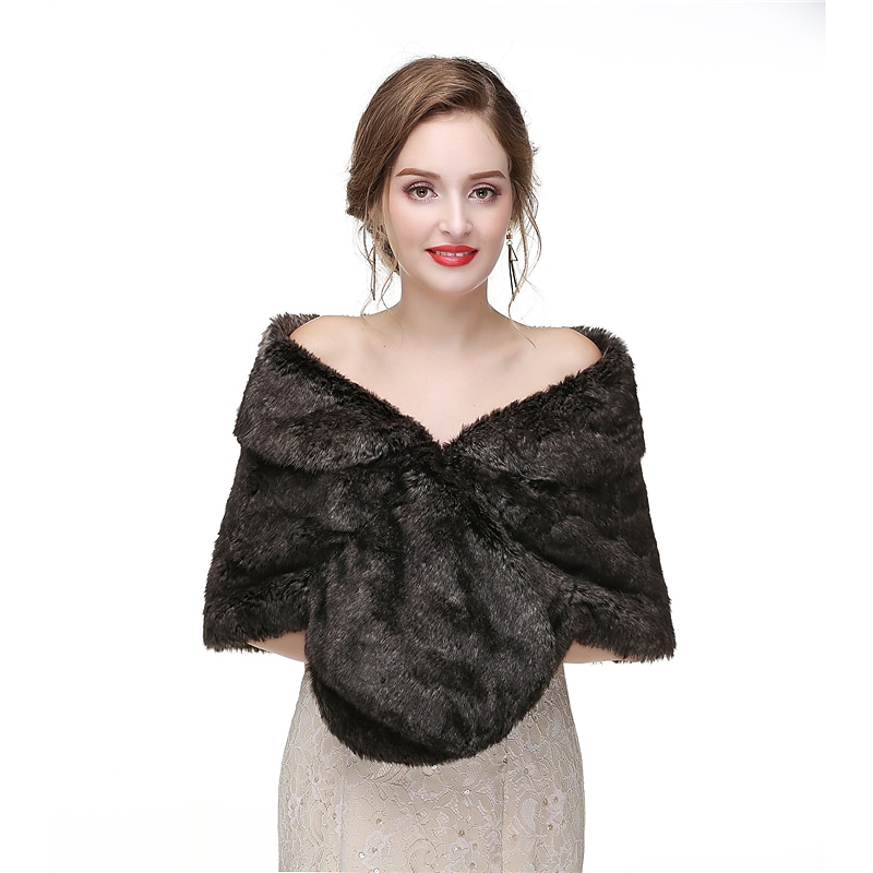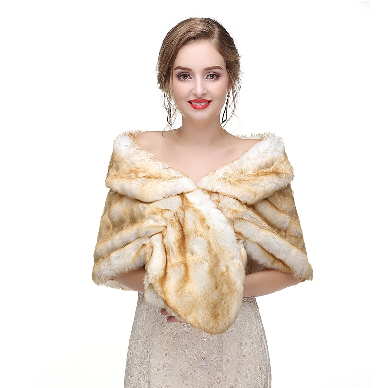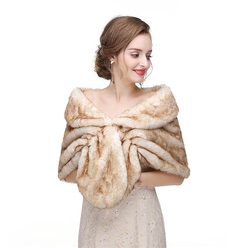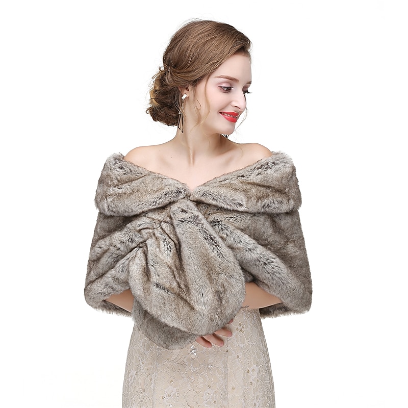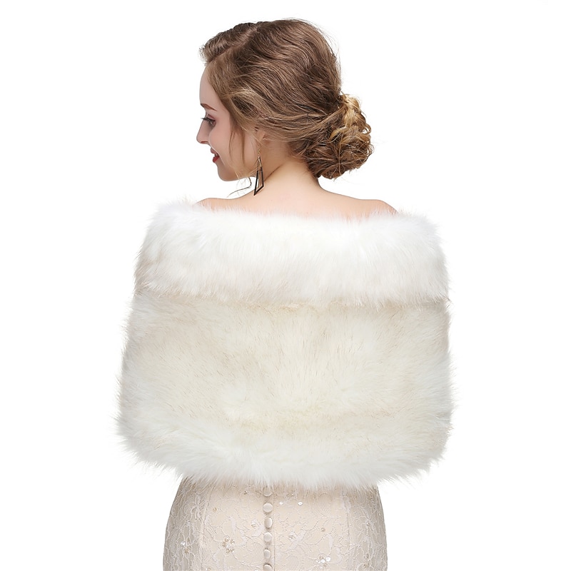 Ivory Faux Fur Shawls Women's Wrap Shrug Elegant Keep Warm Winter Bridal Sleeveless Faux Fur Wedding Wraps For Fall Wedding Formal 14