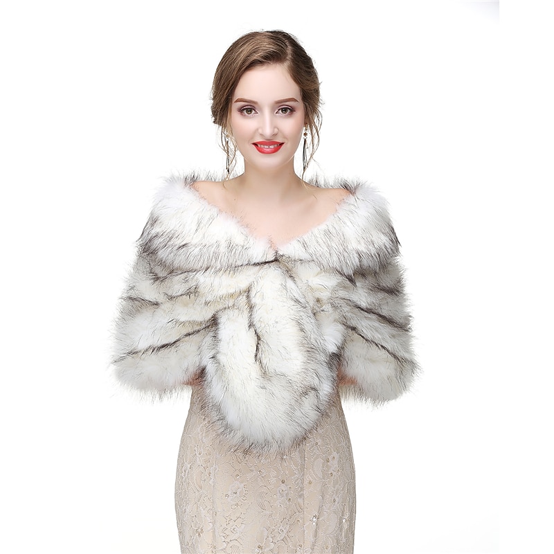 HOT ! Ivory Faux Fur Shawls Women's Wrap Shrug Elegant Keep Warm Winter Bridal Sleeveless Faux Fur Wedding Wraps For Fall Wedding Formal