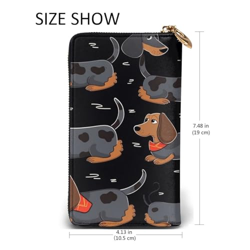 HOT ! I Love My Dog Dachshunds Wallet for Men Women Long Purse Leather Clutch Large Business Handbag Travel Phone Holder Credit Card Holder Money Case with Zipper Leather Wallets Gift