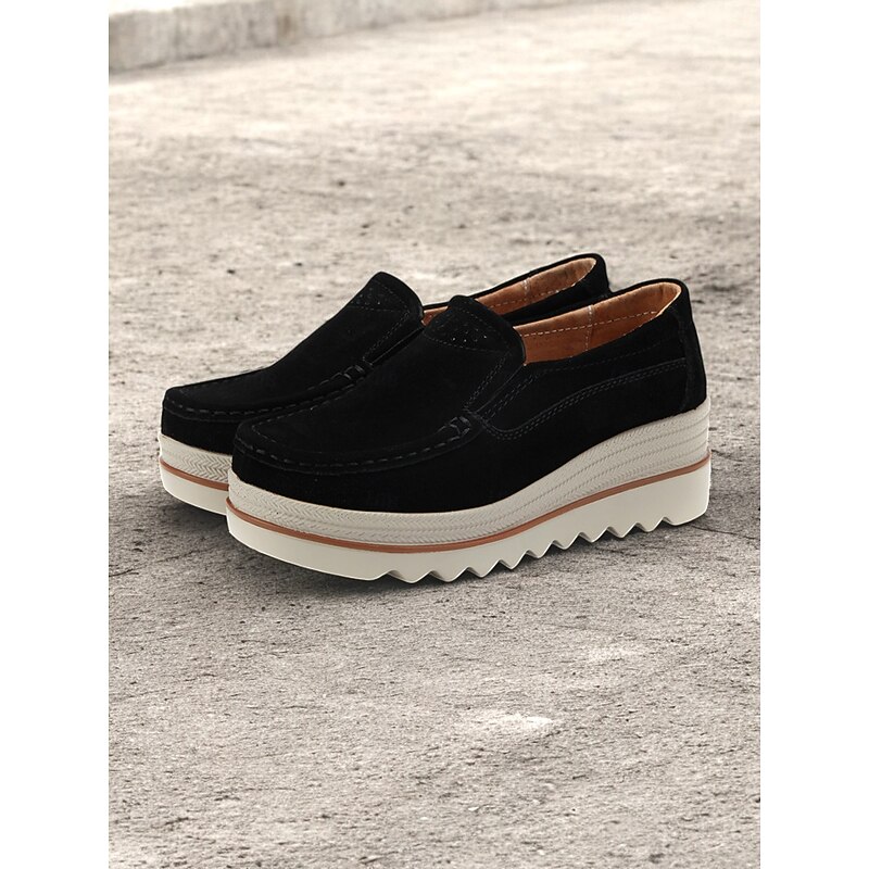 HOT ! Women's Casual Suede Slip-On Loafers with Platform Sole – Comfortable Everyday Shoes with Non-Slip Grip