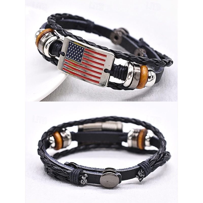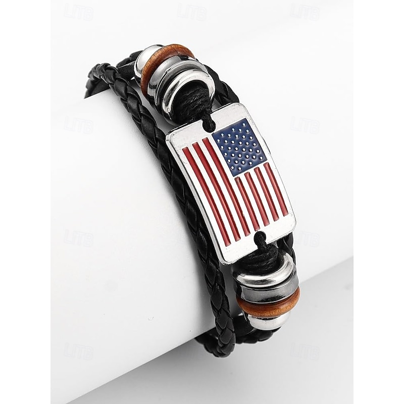 $7.99 - Men's Leather American Flag Bracelet – Stylish Braided Strap with Metal and Wooden Accents for Casual and Patriotic Occasions 2025. Shop for cheap Men's Jewelry online? Buy at lightinthebox.com on sale today!