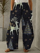 More information about Women's Wide Leg Pants Trousers Vacation Ethnic Style Basic Full Length High WaistPantsChristmas Graphic Reindeer Pocket Elastic Waistband Print Comfy Breathability Inelastic Vacation Casual Daily