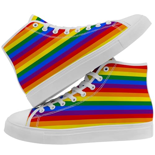 HOT ! Women's Men's Rainbow High Top Sneakers LGBT High Top Canvas Shoes Lace Up Casual Shoes Gifts for Boyfriend Girlfriend