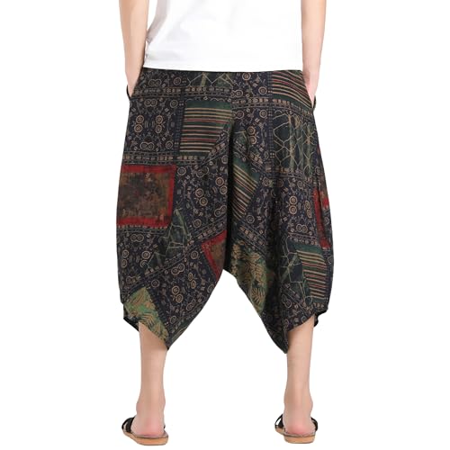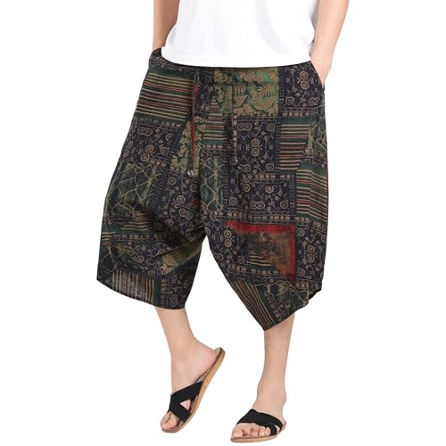 HOT ! Tripleberly Mens Capri Pants Casual 3/4 Harem Pants with Pockets Baggy Capri Shorts for Men Elastic Waist Drawstring
