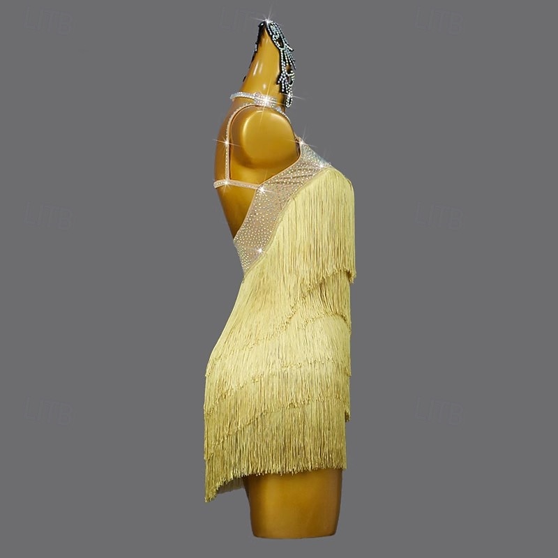 More information about Latin Salsa Dance Dress Crystal / Rhinestone Tassel Pure Color Women's Performance Sleeveless Spandex
