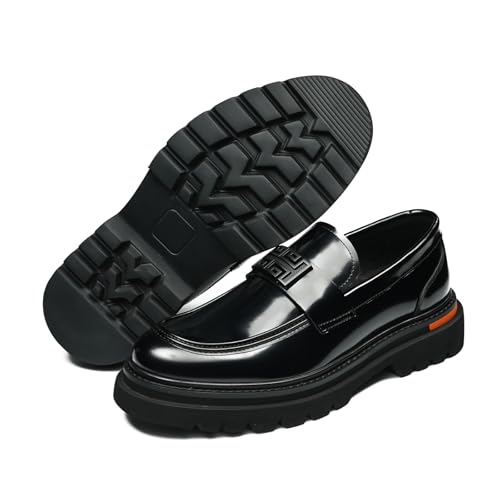 Men's Classic Penny Loafers, Burnished Leather, Low Top Dress Shoes with Metal Hardware, Brown 6