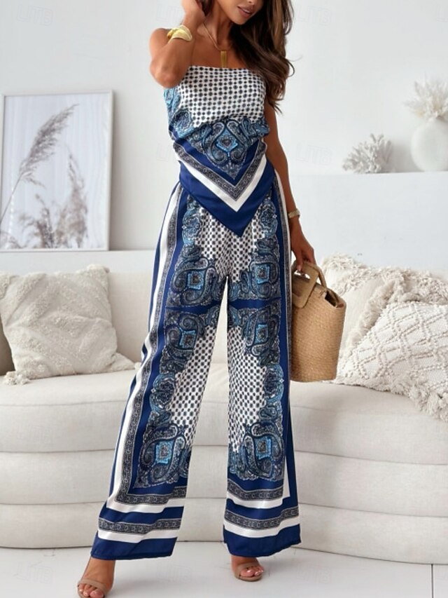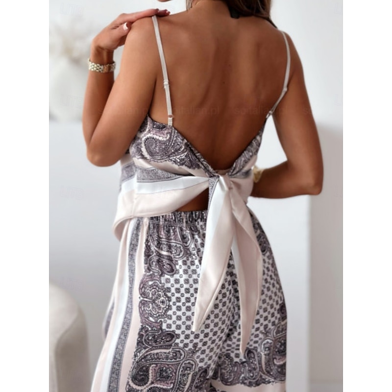 More information about Women's Fashion Streetwear Daily Camisole Wide Leg Pants Sleeveless Strap Floral Color Block Print Casual Daily Blue Beige Summer Regular Fit
