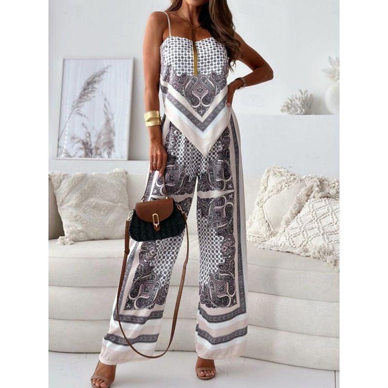 HOT ! Women's Fashion Streetwear Daily Camisole Wide Leg Pants Sleeveless Strap Floral Color Block Print Casual Daily Blue Beige Summer Regular Fit
