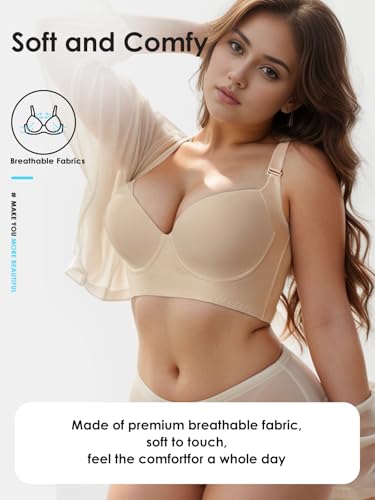 More information about JishinGal Women’s Push Up Bra Full Coverage Seamless Underwire Hide Back Fat, Wide Straps, Smooth Uplift T-Shirt Bra
