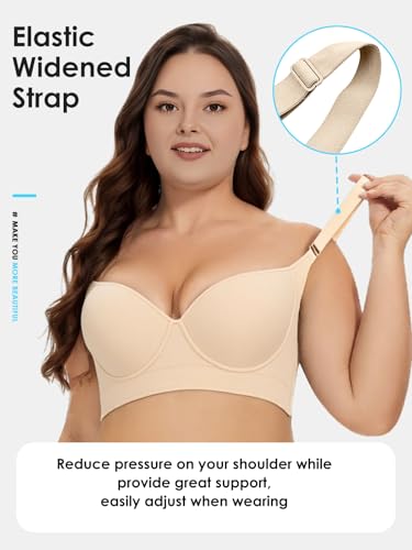JishinGal Women’s Push Up Bra Full Coverage Seamless Underwire Hide Back Fat, Wide Straps, Smooth Uplift T-Shirt Bra 5