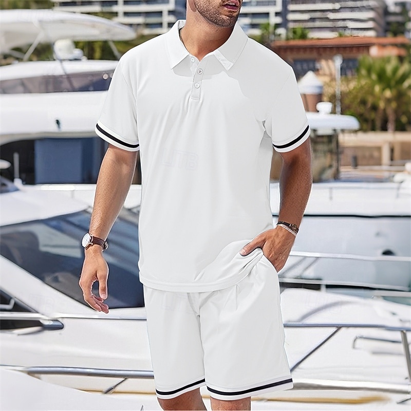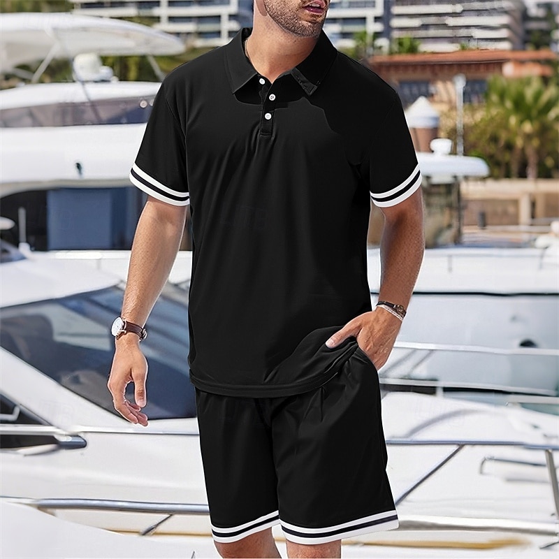 More information about Men's Golf Shirt Golf Polos Shirts Work Casual Lapel Short Sleeve Basic Modern Color Block Patchwork 2 Piece Summer Regular Fit Black White Navy Blue Dark Green Khaki Light Grey Golf Shirt