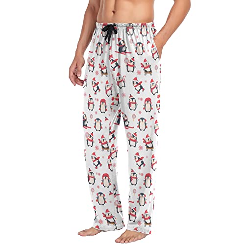 Christmas Winter Men's Pajama Pants Cute Penguin with Candy Super Soft Lounge Pajama Bottoms with Pockets 1
