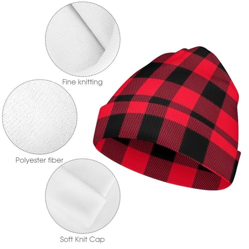 Red and Black Buffalo Plaid Kids Beanie Hat for for Girls Boys Children Cap Winter Knitted Chemo Cancer Headwear Accessories Gifts Decoration 5