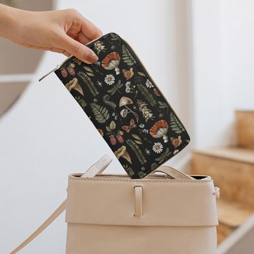HOT ! Portable Travel Wallet for Women, Witchy Mystery Vintage Magic Mushrooms Fall Leaf Floral Pu Leather Travel Long Purse Waterproof Large Capacity Multiple Card Holder Wallet