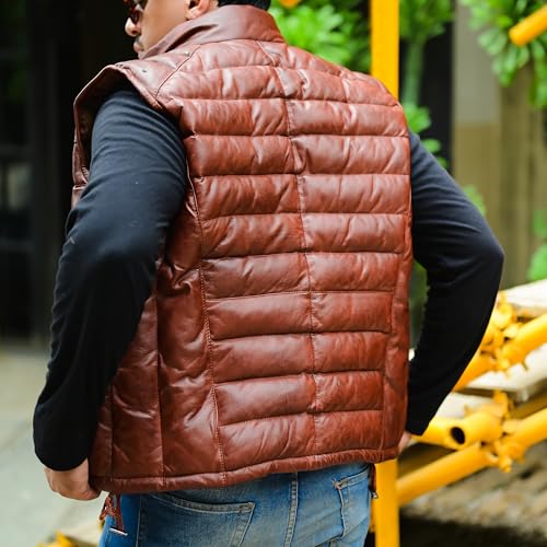• Fabric and Filling: This Puffer Jacket Men makes for a Traditional and Superior quality project. Outer shell made with 100% Genuine Leather whereas inner shell made with highly efficient foam filling providing excellent warmth retention, making it a great choice for those chilly rides or cool nights out.