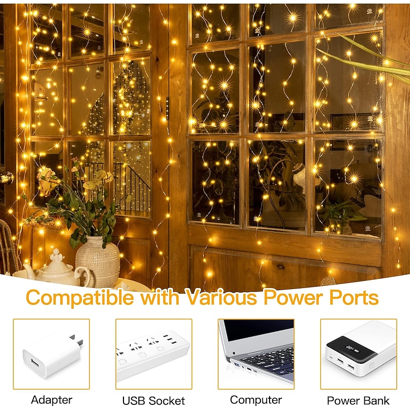 $29.99 - 300 LED 9.8x9.8Ft Remote Control Christmas Curtain Lights USB Plug in Fairy Curtain Lights Outdoor Window Wall Hanging Curtain String Lights for Bedroom Backdrop Wedding Party Indoor Decor Warm White 2025. Shop for cheap USB String Lights online? Buy at lightinthebox.com on sale today!