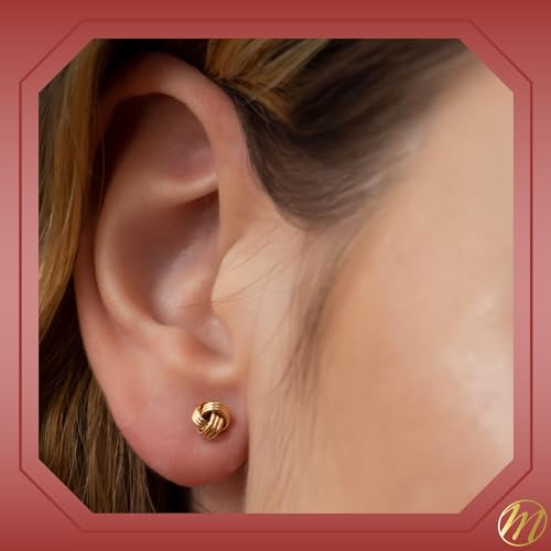 HOT ! Massete Love Knot Earrings - 14k Women's Gold Earrings, Elegant Stud Earrings for Women, Girls, Teens - Classic 5mm Yellow Gold Earrings