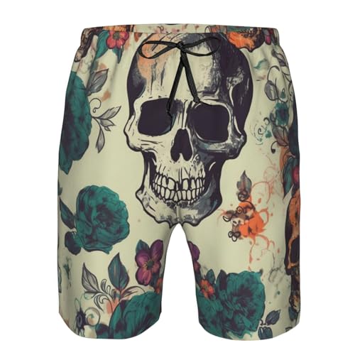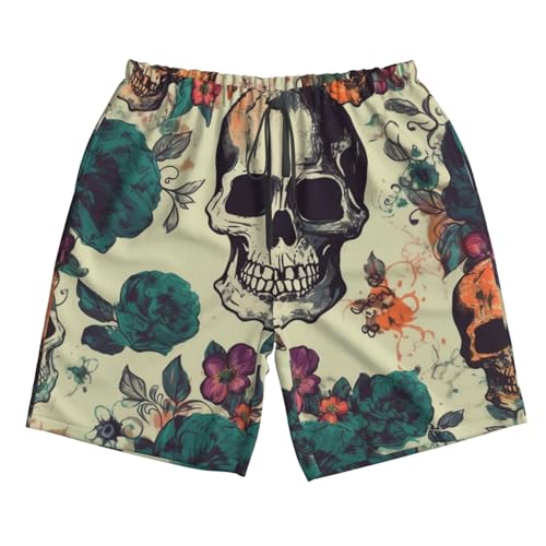 Skull Flower Men's Casual Shorts Drawstring Summer Beach Shorts Quick Dry Bathing Suits Hawaii Swim Trunks 7