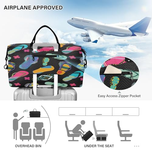 HOT ! Large Foldable Travel Duffel Bag, Waterproof Gym Bag for Men & Women, Carry-On Luggage Weekender Overnight Bag, Colorful Flip-flops