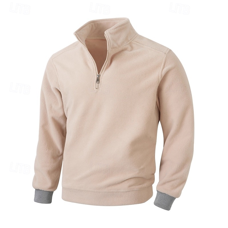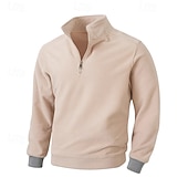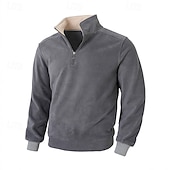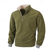 More information about Men's Sweatshirt Fleece Hoodie Quarter Zip Sweatshirt Fleece lined Hoodie Black Army Green Beige Gray High Neck Plain Patchwork Color Block Sports & Outdoor Casual Daily Streetwear Cool Sportswear