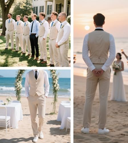Summer Linen Men's Suit Slim Fit 2 Piece Set Vest Pants Men Suit Casual Breathable for Wedding Groom Prom Party Formal 6