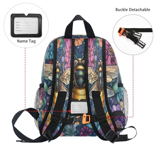 ALAZA Toddler Backpacks for Boys Girls Beautiful Bee Colorful Flowers Kids Backpack with Chest Clip and Name Tag,M 4