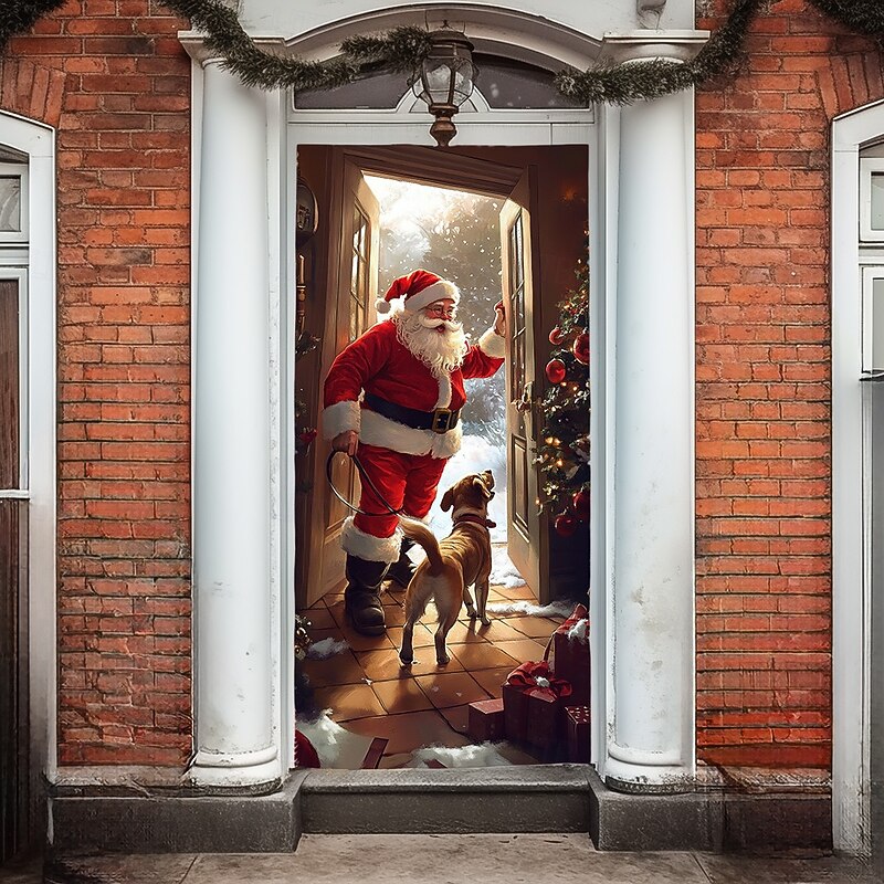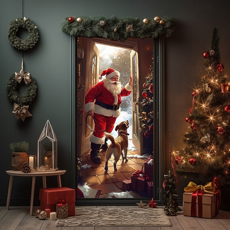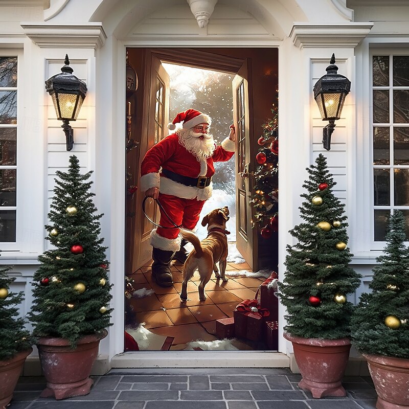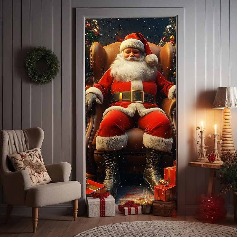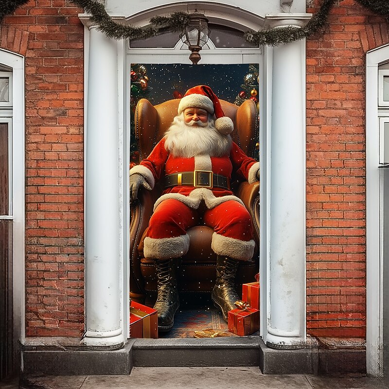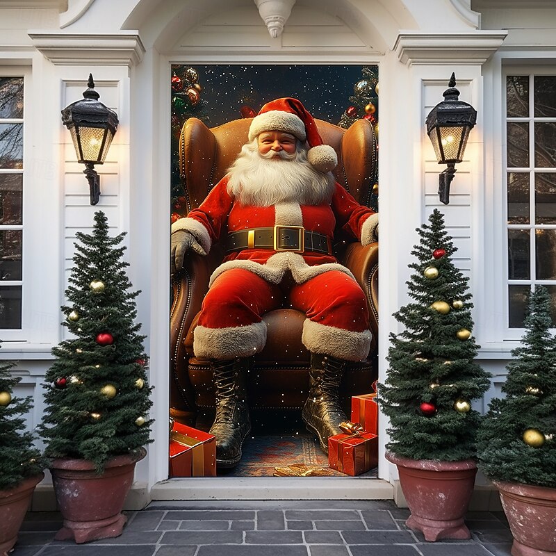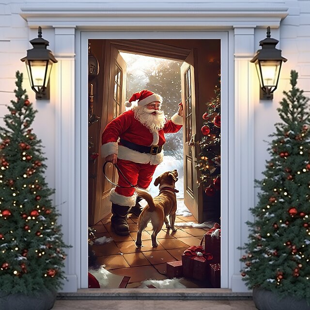 HOT ! Christmas Door Decorations Door Covers Xmas Santa Cycling Door Tapestry Door Curtain Decoration Backdrop Indoor/Outdoor Door Banner for Front Door Farmhouse Christmas Holiday Party Decor Supplies