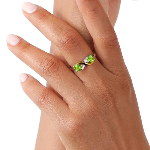 Gemstone Birthstone and Lab Grown Diamond Accents Eternal Love Infinity Ring for Women | 925 Silver and 10K Yellow Gold | Heart Shape 5MM & Round 1.3MM | Two-Tone Wedding Anniversary Promise Ring 6