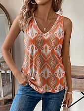 More information about Women's Camisole Tank Top Vest Vintage Ethnic Boho Geometric Print Sleeveless Regular Tops V Neck Vacation Orange Summer