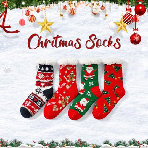 BONANGEL Christmas Slipper Socks for Women, Fuzzy Grips Non Slip Thick Fluffy Comfy Socks Xmas Gifts 4